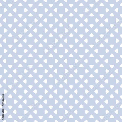© Olgastocker, Fototapeta premium Simple minimal ornament. Abstract floral geometric seamless pattern. Vector background with small flower silhouettes, triangular shapes, dots, grid. Minimalist blue and white texture. Repeated design