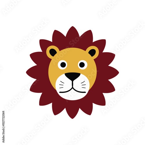 © Elite Elegance, Obraz premium Simple Minimalist Funny Lion Vector – Colorful Design on White Background