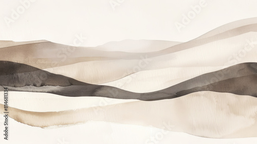 Obraz premium Simple, minimalist graphics in boho, landscape, desert, mountain, muted beige-brown and neutral colors.