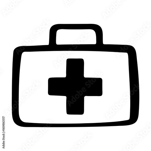 Obraz premium Simple monochrome first aid kit icon illustration for medical assistance