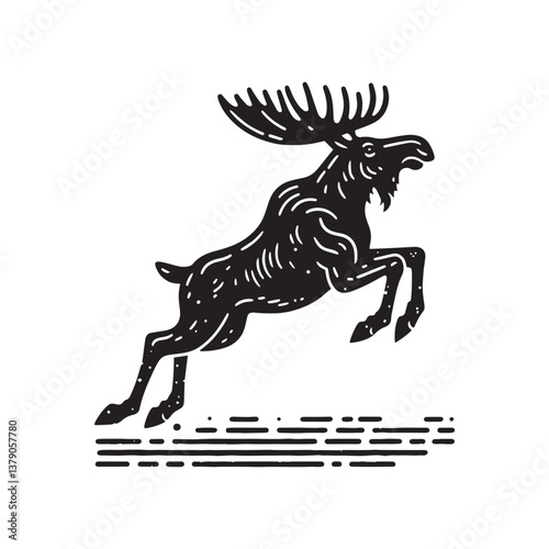 Obraz premium Simple Moose Jumping Vector Icon – Vintage Logo & Rustic Illustration
