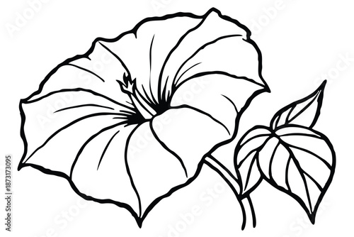 Fototapeta premium Simple Morning Glory Leaf and Stem Line Art, Minimalist Black and White...