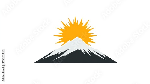 Obraz premium Simple mountain logo with a sun in the background.