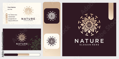 Fototapeta premium Simple nature leaf ornament natural logo and business card , Collection of mandala with ornamental patterns of flowers and leaves.