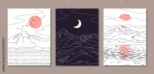 Fototapeta premium Simple Nature Scenes Set with Mountains.