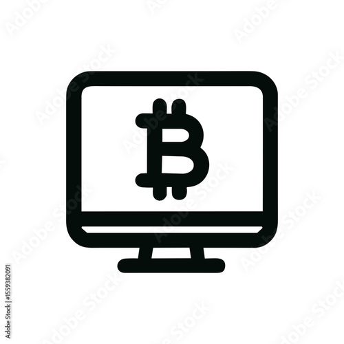 © Namu Icons, Obraz premium Simple Outline Bitcoin Symbol Displayed on Computer Screen Icon Design