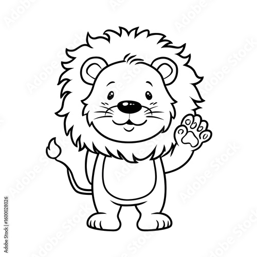 Obraz premium Simple Outline Cartoon Lion Waving Hand Drawn Line Art Illustration. Ai...