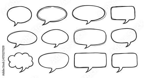 Fototapeta premium Simple Outline Comic Speech Bubbles – Clean Hand Drawn Cartoon Dialog...