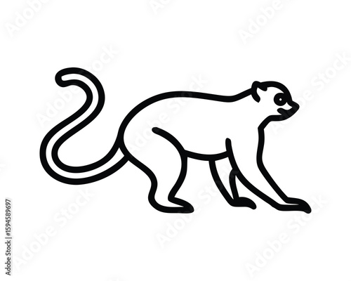 © MD REAJUL, Obraz premium Simple outline drawing of a monkey walking with a curled tail