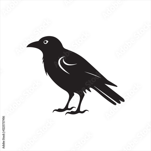 Obraz premium Simple Outline Raven Graphic for Easy Cut-Out Designs on Solid White Background