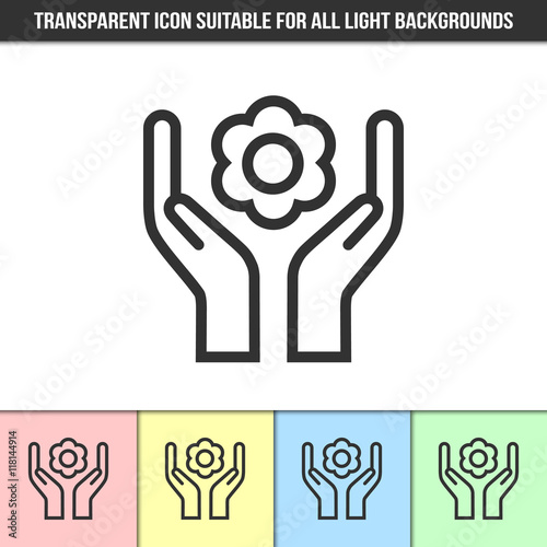 © pk74, Obraz premium Simple outline transparent caring hands with flower icon on different types of light backgrounds