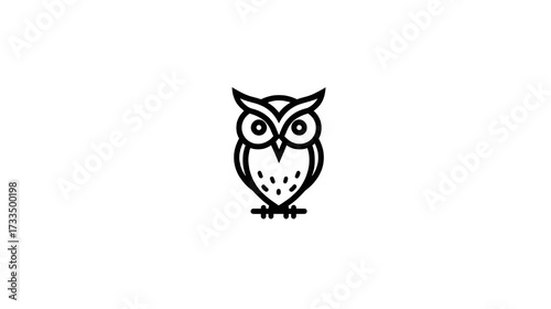 © Nalinda, Obraz premium Simple Owl Drawing showing Minimalist Animal Illustration on White background