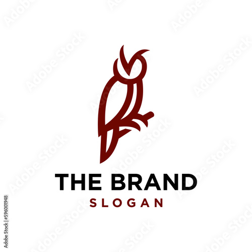 Fototapeta premium simple owl line sitting on a tree icon logo vector design, modern birdlogo...