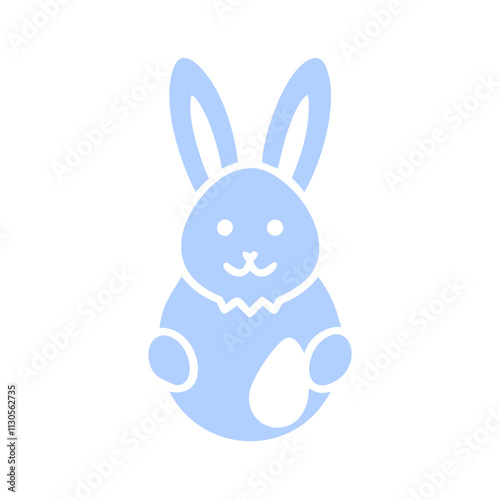 Fototapeta premium Simple pastel blue Easter bunny icon with an egg for spring festivities