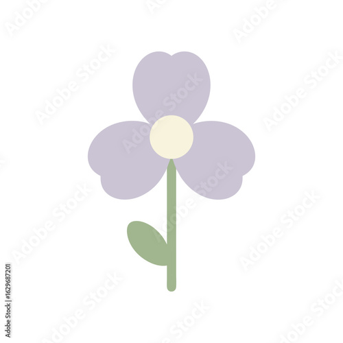 Fototapeta premium Simple pastel lavender flower with green stem and leaf