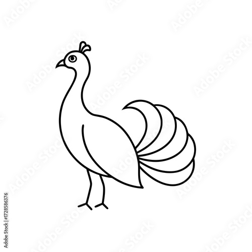 © FATEMA, Obraz premium Simple peacock line drawing on transparent background