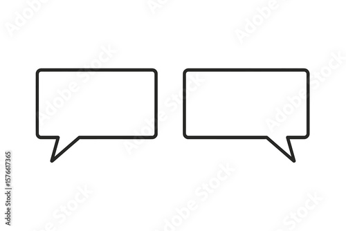 © Daniela, Naklejka premium Simple rectangular speech bubble vector icon set. Minimalist chat balloon for dialogue, conversation, messages, comments, quotes. Communication and talk concept design.