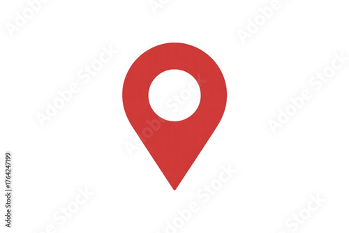 © Abode stock, Fototapeta premium Simple red map pin icon with black background representing location navigation and destination marking on a digital interface