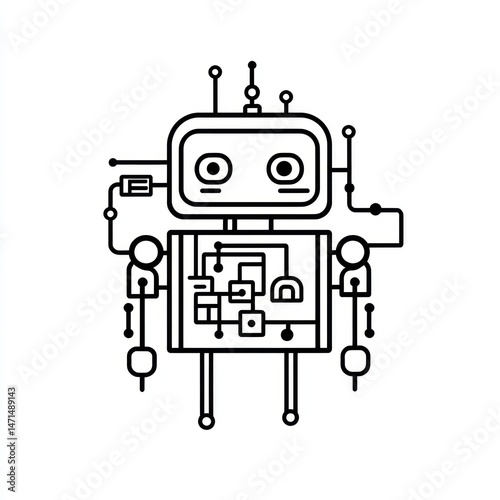 © Teruss, Obraz premium Simple robot illustration, technology concept, white background, educational use