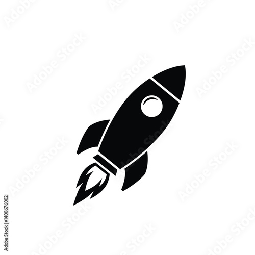 © dipu, Fototapeta premium Simple Rocket Ship Launching With Flames In Black And White Style