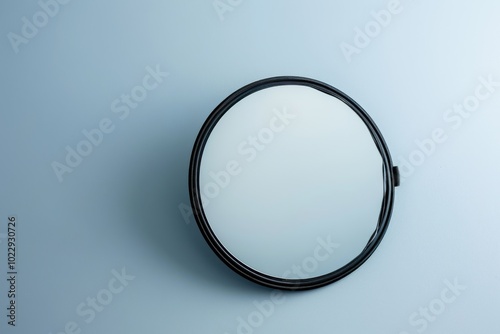 Fototapeta premium Simple round mirror on a pale blue background showcasing its reflective surface and clean design