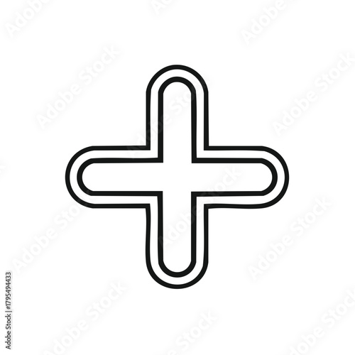 Obraz premium Simple Rounded Cross Outline Illustration, Addition Symbol, Plus Sign Shape