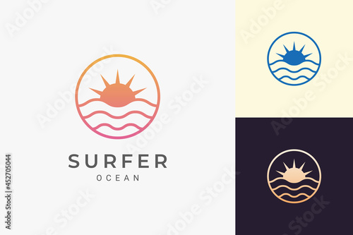 © Murnifine, Fototapeta premium Simple sea or surf logo with ocean wave and sun in circle shape