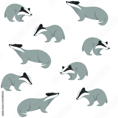© Lili Kudrili, Naklejka premium Simple seamless trendy animal pattern with badger. Cartoon vector illustration.