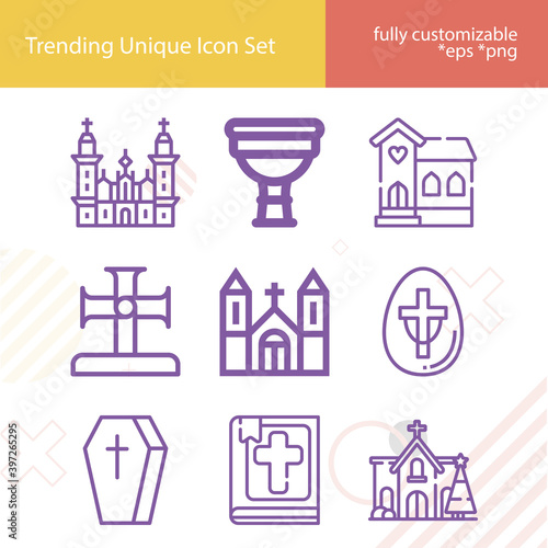 © Nana, Fototapeta premium Simple set of christians related lineal icons.