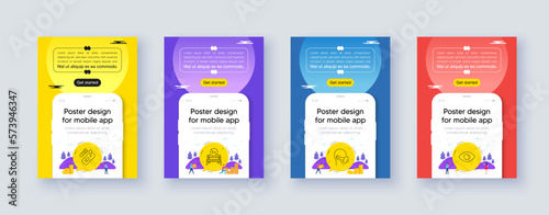 © blankstock, Fototapeta premium Simple set of Eu close borders, Covid test and Medical mask line icons. Poster offer design with phone interface mockup. Include Eye icons. For web, application. Vector