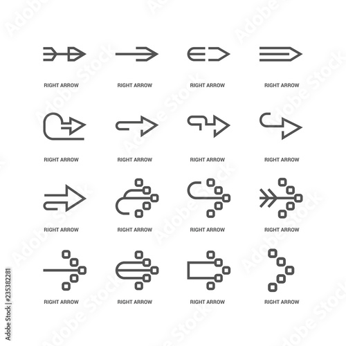 Fototapeta premium Simple Set of 16 Vector Line Icon. Contains such Icons as Right