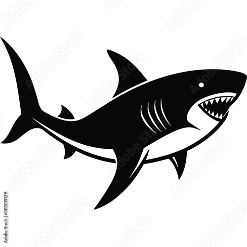 © Shirin, Fototapeta premium simple shark vector silhouette black color for animal element idea