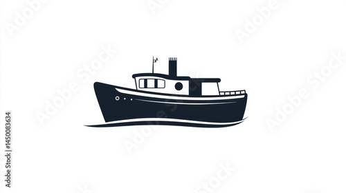 Fototapeta premium Simple silhouette of a tugboat on water. Possible use Stock image for...