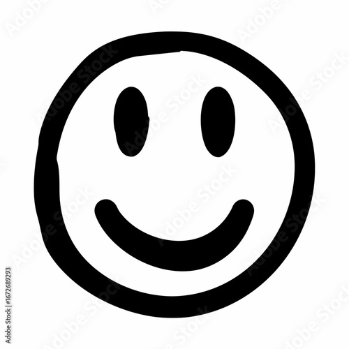 Fototapeta premium Simple smiley face with black outline and filled eyes and mouth