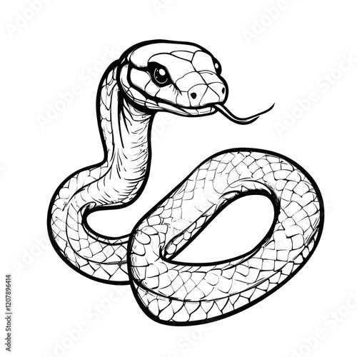 © Dilshad, Fototapeta premium Simple Snake Outline Drawing Coloring Book Page for Kids