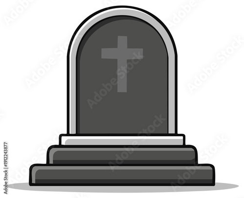 Fototapeta premium Simple Stone Gravestone with Christian Cross Symbol, Funeral Monument,...