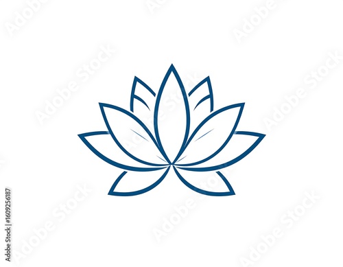 © Tuy, Naklejka premium Simple, stylized lotus flower graphic. Dark blue line art on white background