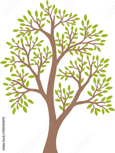 © evgenii141, Obraz premium Simple Stylized Tree with Green Leaves