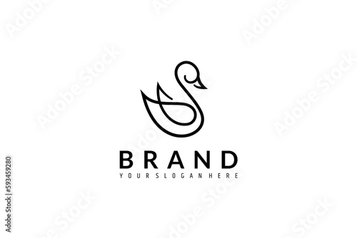 © FendyTerisno, Fototapeta premium Simple swan logo in continuous line design style