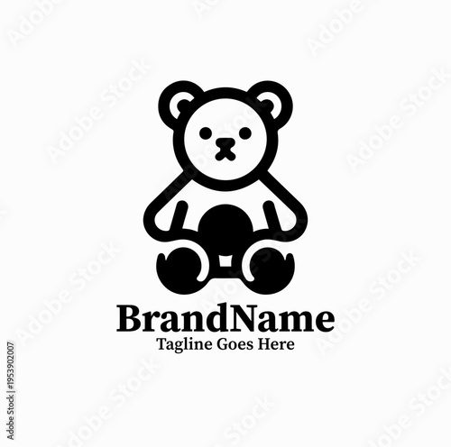 Obraz premium Simple Teddy Bear Logo Minimal Cute Baby Brand Mascot