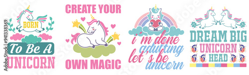 © David, Fototapeta premium Simple Unicorn Hand Lettering, Inscriptions Set Vector Illustration for Flyer, Sticker, Announcement