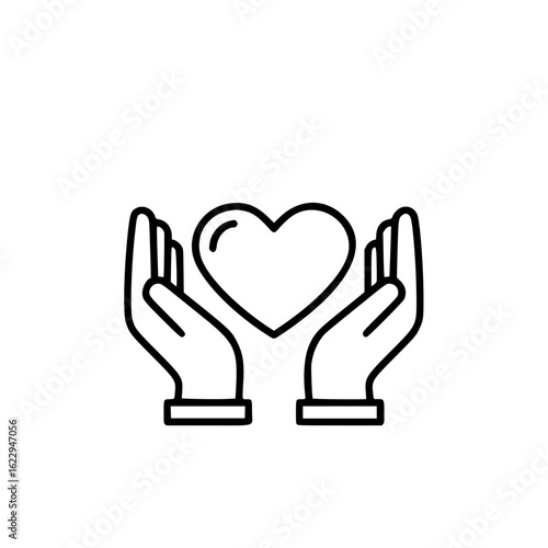 Obraz premium Simple vector black icon a Hands holding a heart in minimalistic line art style