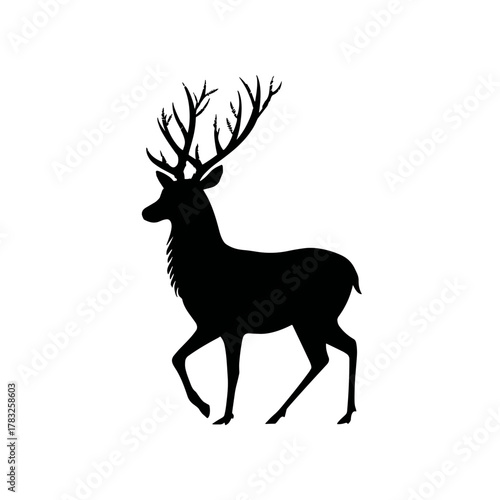 © Anjei, Obraz premium Simple Vector deer silhouette clipart, icon, logo