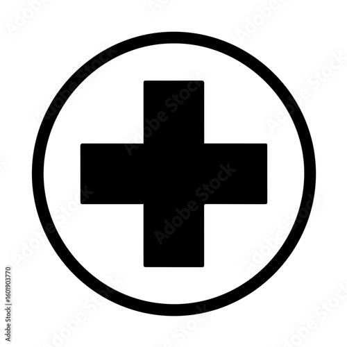 © Vistara, Fototapeta premium Simple vector icon black medical cross or plus sign inside a circle