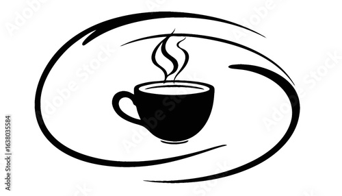 © hans, Obraz premium Simple vector icon of a coffee cup with steam and a heart design