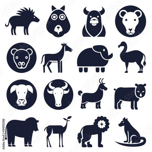 © Xihan, Fototapeta premium Simple vector icons showing different animals in dark color