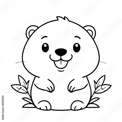 © meastudios, Naklejka premium Simple vector illustration of Beaver drawing for kids colouring activity