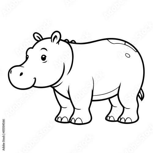 © meastudios, Naklejka premium Simple vector illustration of hippo drawing for kids colouring activity
