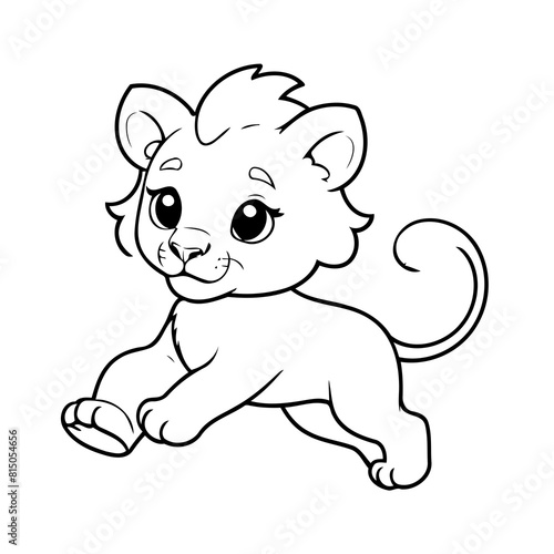 © meastudios, Naklejka premium Simple vector illustration of Lion drawing for kids colouring page