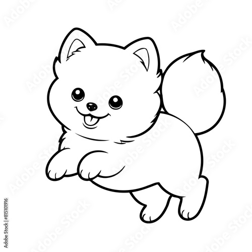 © meastudios, Naklejka premium Simple vector illustration of Pomeranian drawing for kids page